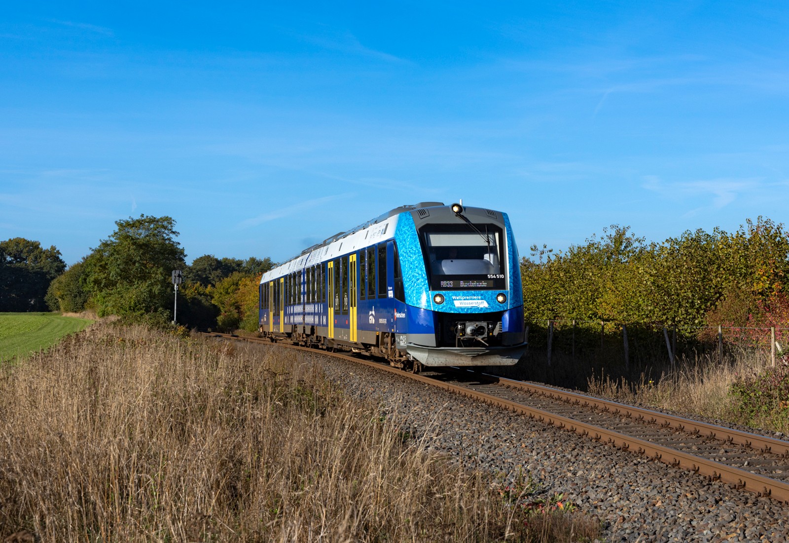 | ausgelieferte Fahrzeuge: | 554 001, 554 002, 554 003, 554 004, 554 005, 554 006, 554 007, 554 008, 554 009, 554 010, 554 011, 554 012, 554 013, 554 014 (004, 009, 010, 011, 012, 013 mit Sonderbeklebung "Weltpremiere Wasserstoff" auf den Fronten) |